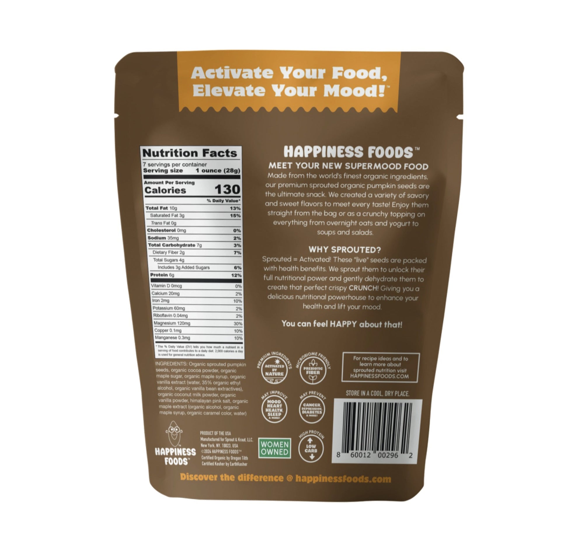 Craving something sweet? Dive into our Vanilla Cacao Sprouted Pumpkin Seeds! Coated in a luxurious blend of cacao, maple syrup, and vanilla, these light and crunchy treats are the perfect guilt-free indulgence for dark chocolate lovers.